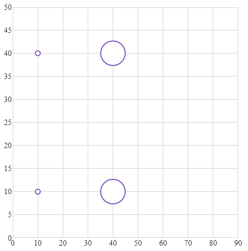 Bubble X/Y データに相対マーカーを使用するバブル チャートを指定します。