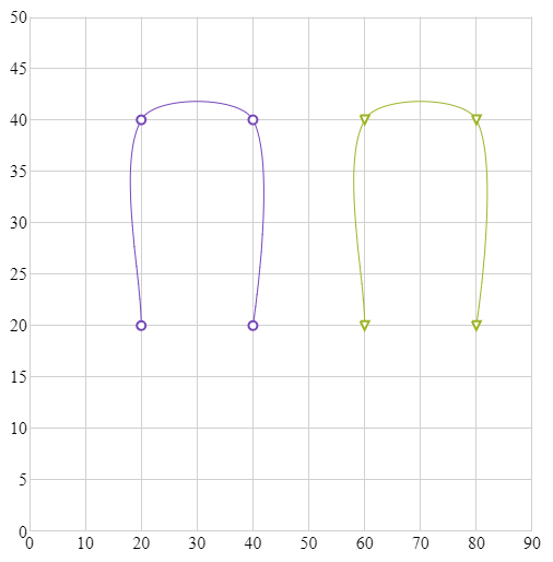 Spline X/Y データにスプラインで接続される小さいマーカーを使用したスプライン チャートを指定します。