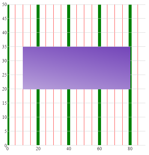 igShapeChart コントロールで、軸の主間隔は主グリッド線および軸ラベルが軸に描画される頻度を指定します。同様に、軸副間隔は副グリッド線が軸に描画される頻度を指定します。